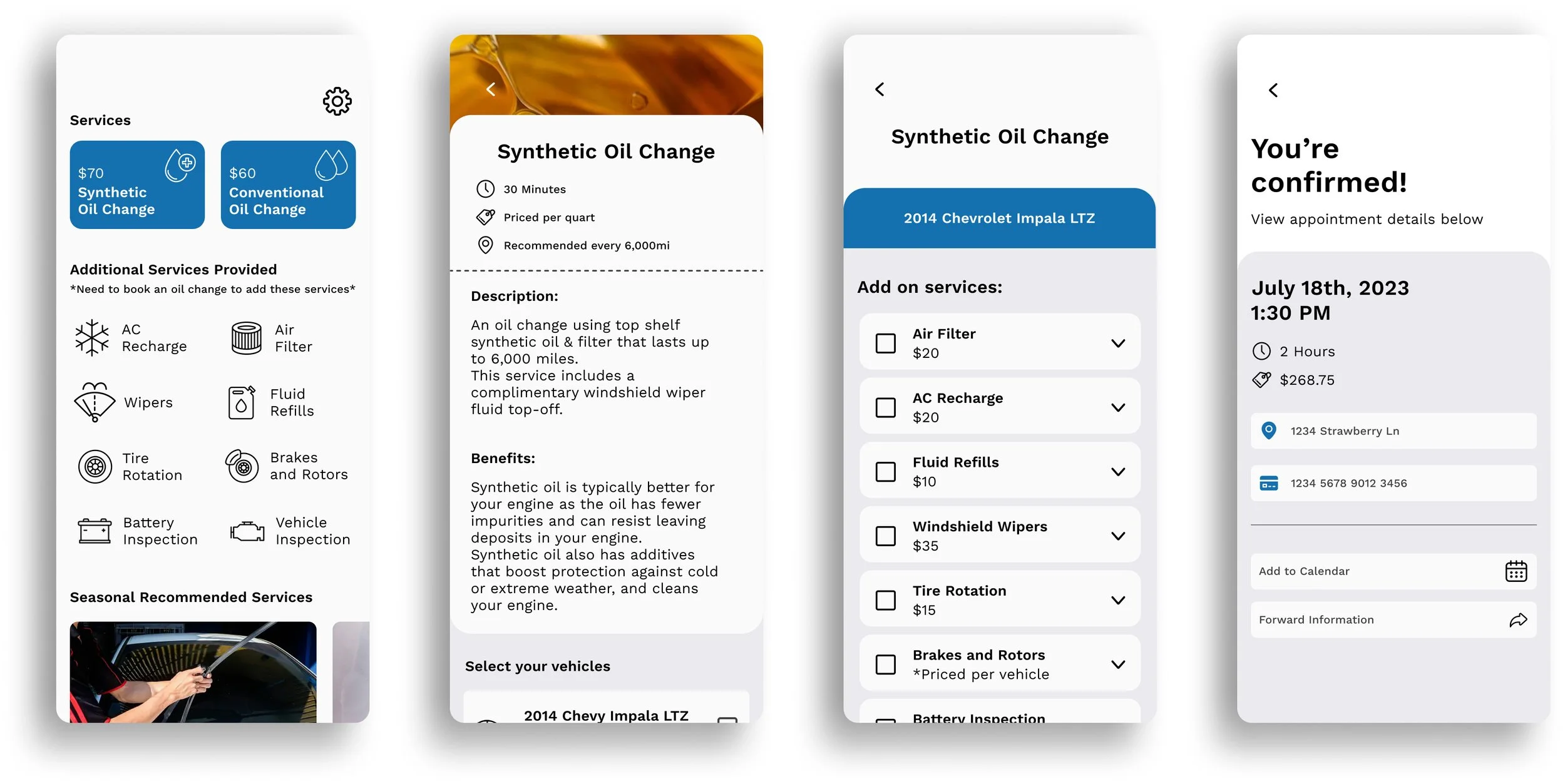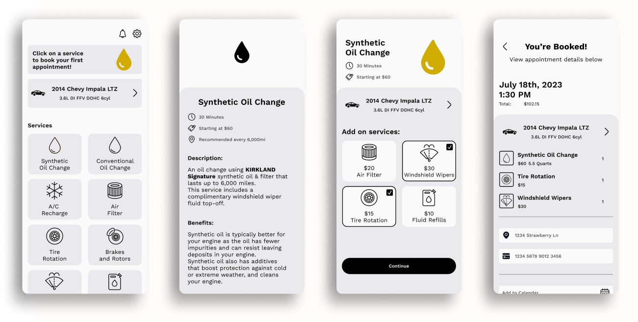 I dove into market research to understand how commercial lube shops' online presence helps their business. I also assessed their online booking systems. Through heart-to-heart interviews with Go Oil customers, I learned how they truly feel about their oil change experiences, and what features would make them want to download an app dedicated to vehicle maintenance.