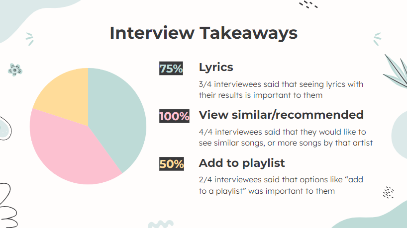 Interview results highlighted that most users expressed interest in features such as: viewing lyrics alongside their search results, discovering similar or recommended songs, and seamlessly adding search results to a playlist.