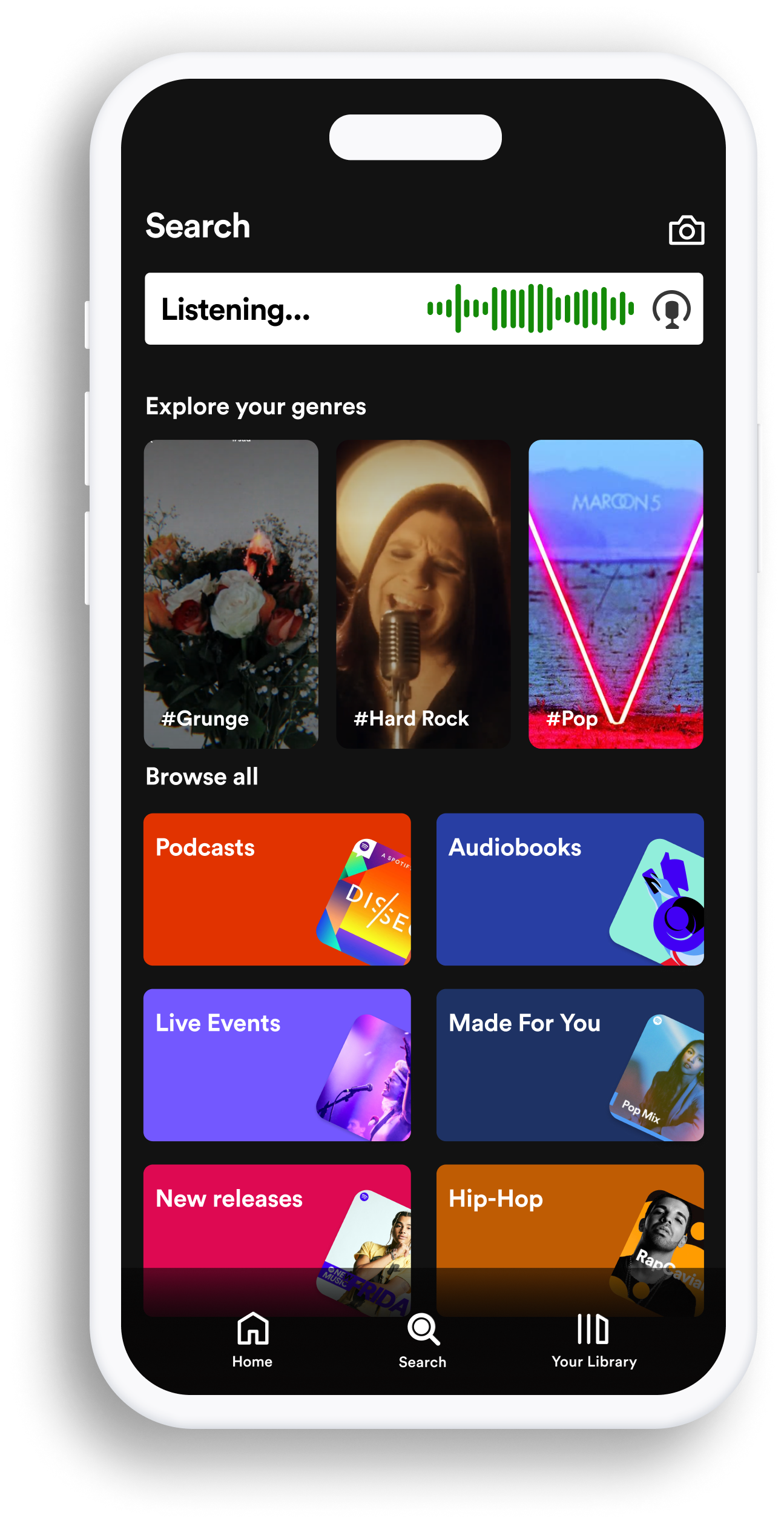 However, after some peer review I eventually settled on including a microphone icon into the search bar for better visibility and usability.